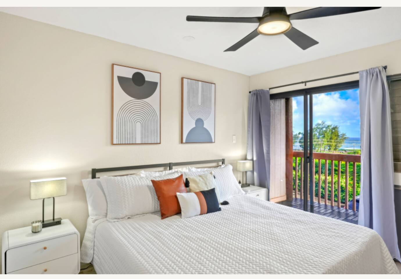 Welcome to The JAX! A modern, fully renovated ocean oasis. Kick off your shoes & relax in style. Ocean views from each lanai. Centrally located in Lihue, 5 minutes from the airport. Comfy king & queen beds. Cool off after a day of adventure with A/C in each room. Five minute walk to Kalapaki beach & Nawiliwili harbor. Delicious walkable restaurants & shopping. On site salt water pool, pickle-ball, shuffle board & gas grill. Fully stocked kitchen. Coffee bar & fresh beans for your morning brew.